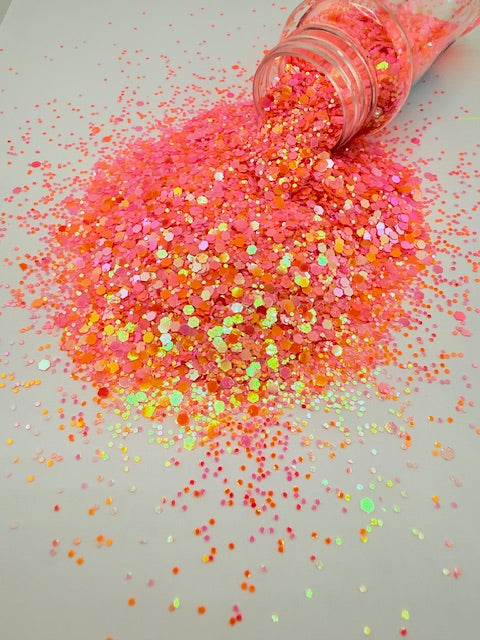 Neon Funk- Orange Peach Pink Custom Mixed Chunky Glitter 8-9