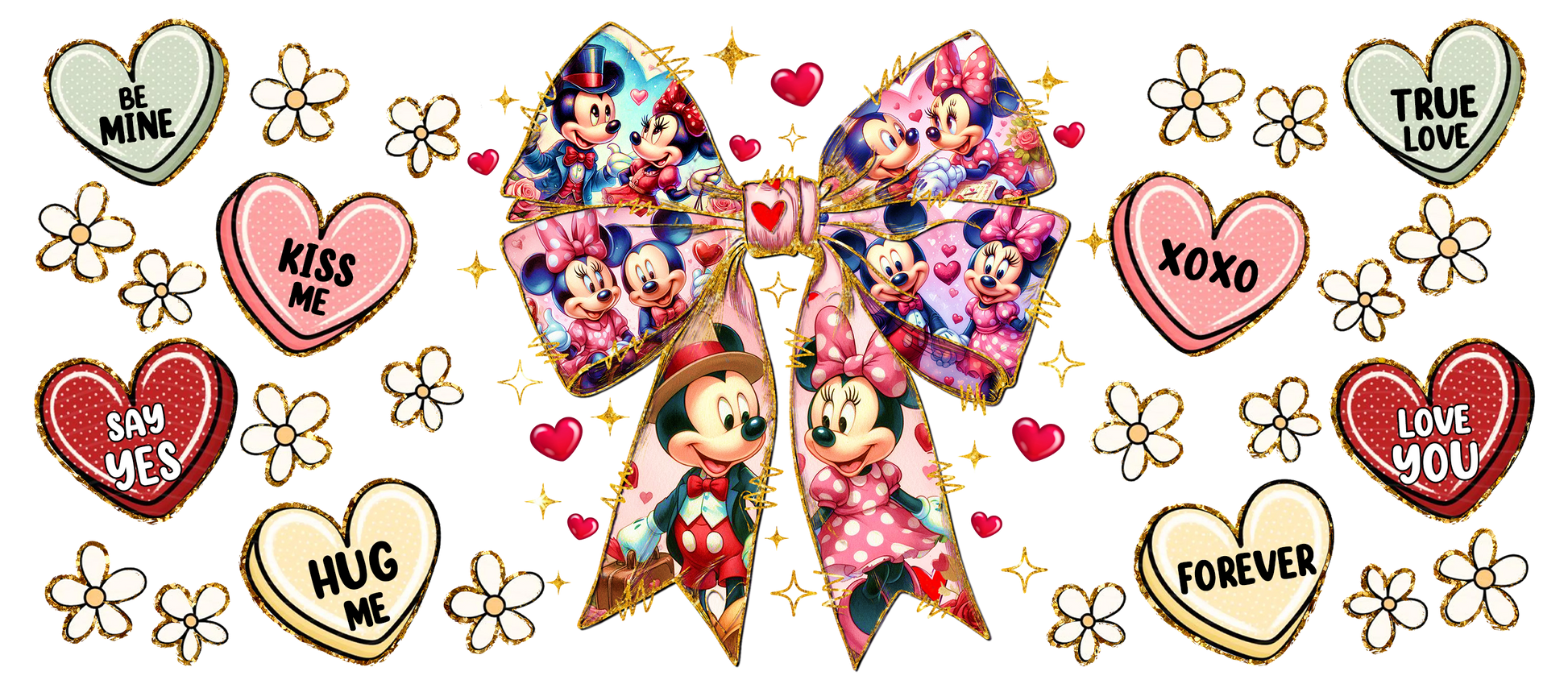 569. Mick and Min Bow Hearts UVDTF